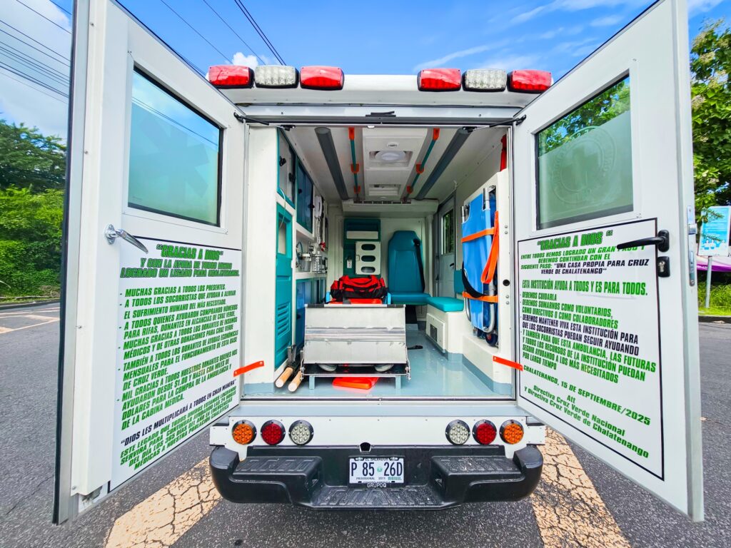 La adquisición de este vehículo ha sido posible gracias a la colaboración de personas altruistas y al esfuerzo de la Junta Directiva Nacional de Cruz Verde Salvadoreña, reafirmando el compromiso institucional de brindar un servicio eficaz y cercano a la población salvadoreña.